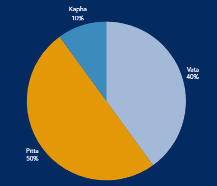 The purpose of ayurveda and its methods is not to achieve an equal balance of vata, pitta, kapha, but to maintain balance of one’s own true nature. As we can see below, someone may be 50% pitta, 40% vata, and 10% kapha. We do not want to make these 33% each, but ensure that an individual is maintaining the balance of 50-40-10.